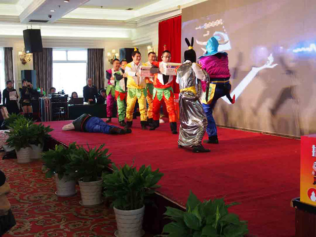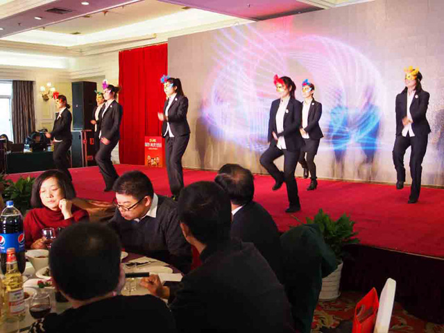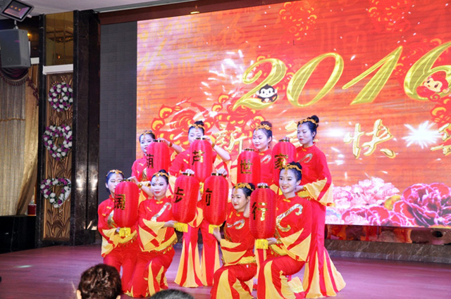2015年度总结表彰大会圆满结束后,2016年迎新春晚会在喜庆开场舞《张灯结彩闹新春》中开始,欢快的舞步在道具红灯笼的掩映下散发出浓浓的新年气息,将浓浓的祝福洒满大厅的每一个角落。本次联欢会节目精彩纷呈,所有的节目都是各个部门利用工作之余自编自导自演,欢快喜庆、激情澎湃的歌曲;唯美、活泼、热情如火的舞蹈;诙谐幽默的喜剧(小品);振奋人心的团队合唱等等。这些都充分展示了ga黄金甲员工的多才多艺,以及快乐工作、健康生活的文化理念。
