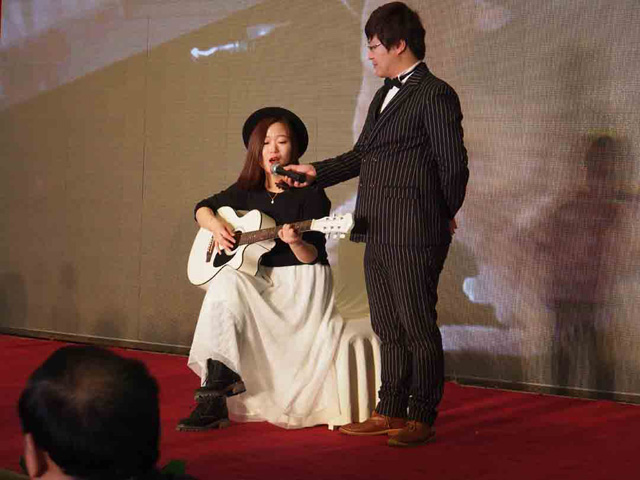 ga黄金甲药业营销中心2015年度总结表彰会后,2016年迎新春ga黄金甲家宴拉开序幕,员工们自排自演了很多精彩节目为大家助兴,舞蹈串烧、吉他弹唱、舞台剧,丰富多彩的节目使家宴的欢乐气氛愈发浓烈,现场掌声、欢笑声不断。当台上响起《父亲的草原,母亲的河》这首熟悉的旋律时,多才多艺的董事长刘景萍博士也走上舞台,与台上表演者一道,为大家演唱了这首经典歌曲,她高昂的歌声将现场气氛推向了高潮。一曲唱罢,董事长借歌词意境,嘱咐大家“要关心关爱父母,常回家看看”,这句充满关爱的肺腑之言让在场的所有ga黄金甲人都感到了浓浓的暖意,现场再一度响起了热烈的掌声。
